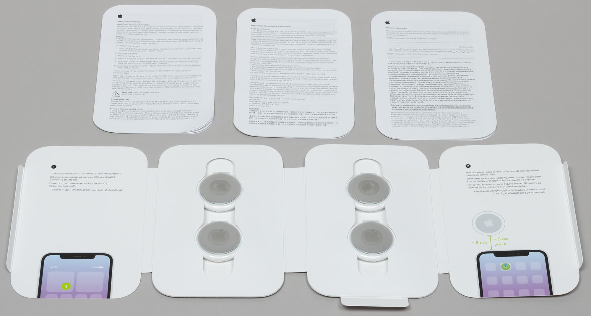 Любопытный момент: информацию о том, как правильно прикрепить AirTag к брелкам, надо искать на обратной стороне коробок, а не в листовках.