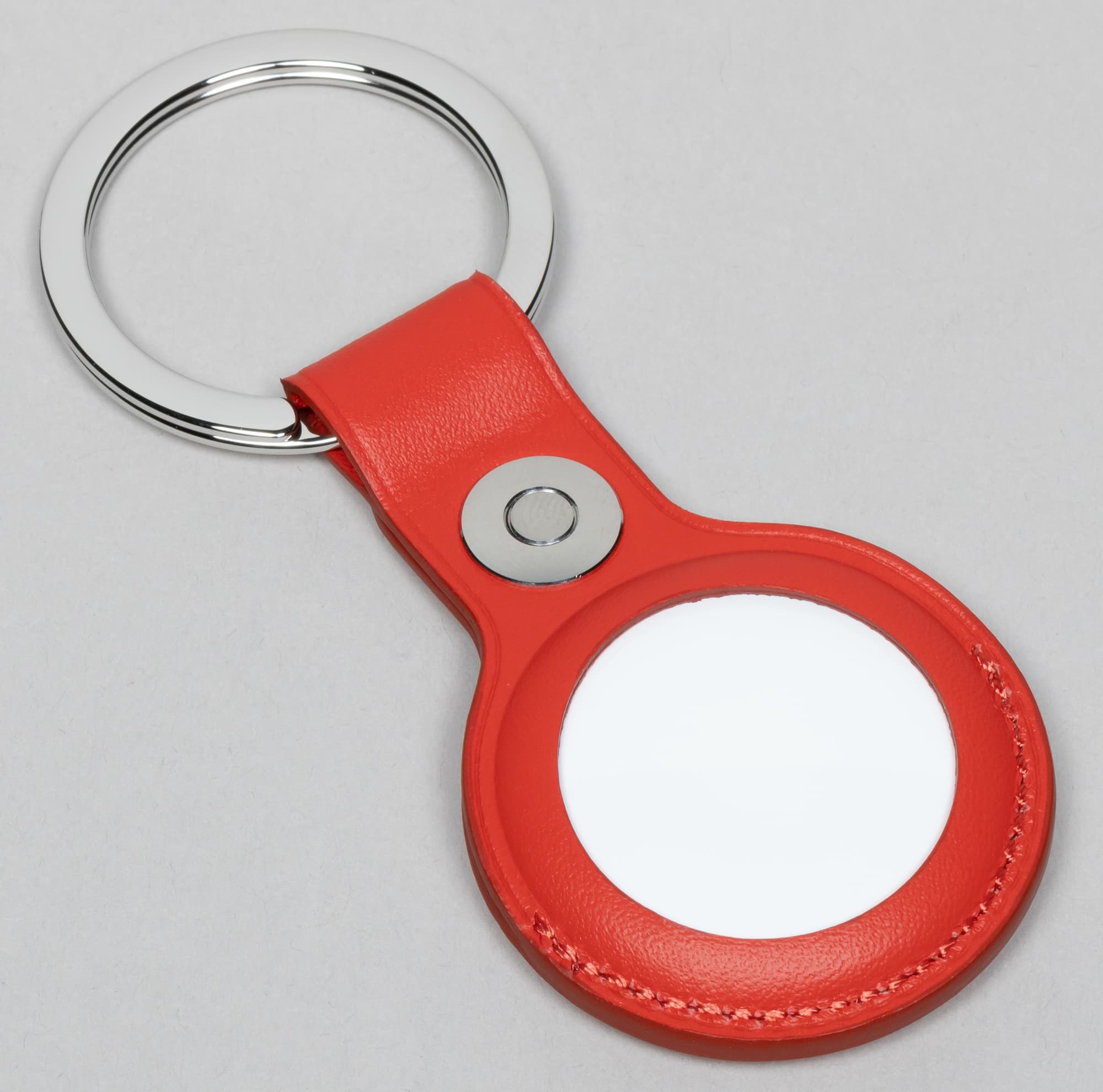 Нам кажется очень удачным сочетание двух фирменных дизайнерских элементов Apple: белого пластика и металла с зеркальной поверхностью. С другой стороны, признаться, AirTag слишком маленький, чтобы его внешний вид приковывал взор. К тому же, его практически невозможно использовать без подвесок или брелков, поэтому они еще оттягивают внимание на себя. Вот, например, как AirTag выглядит в кожаном брелке. Можно ли догадаться, бросив беглый взгляд, что это устройство великой Apple?