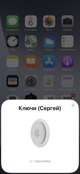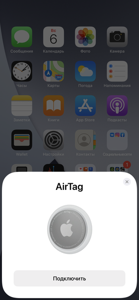 Как только вы распаковываете новый AirTag и размещаете его рядом с iPhone или iPad, работающим под управлением последней версии операционной системы, на экране появляется такое окно, напоминающее об аналогичном окне при подключении наушников AirPods.
