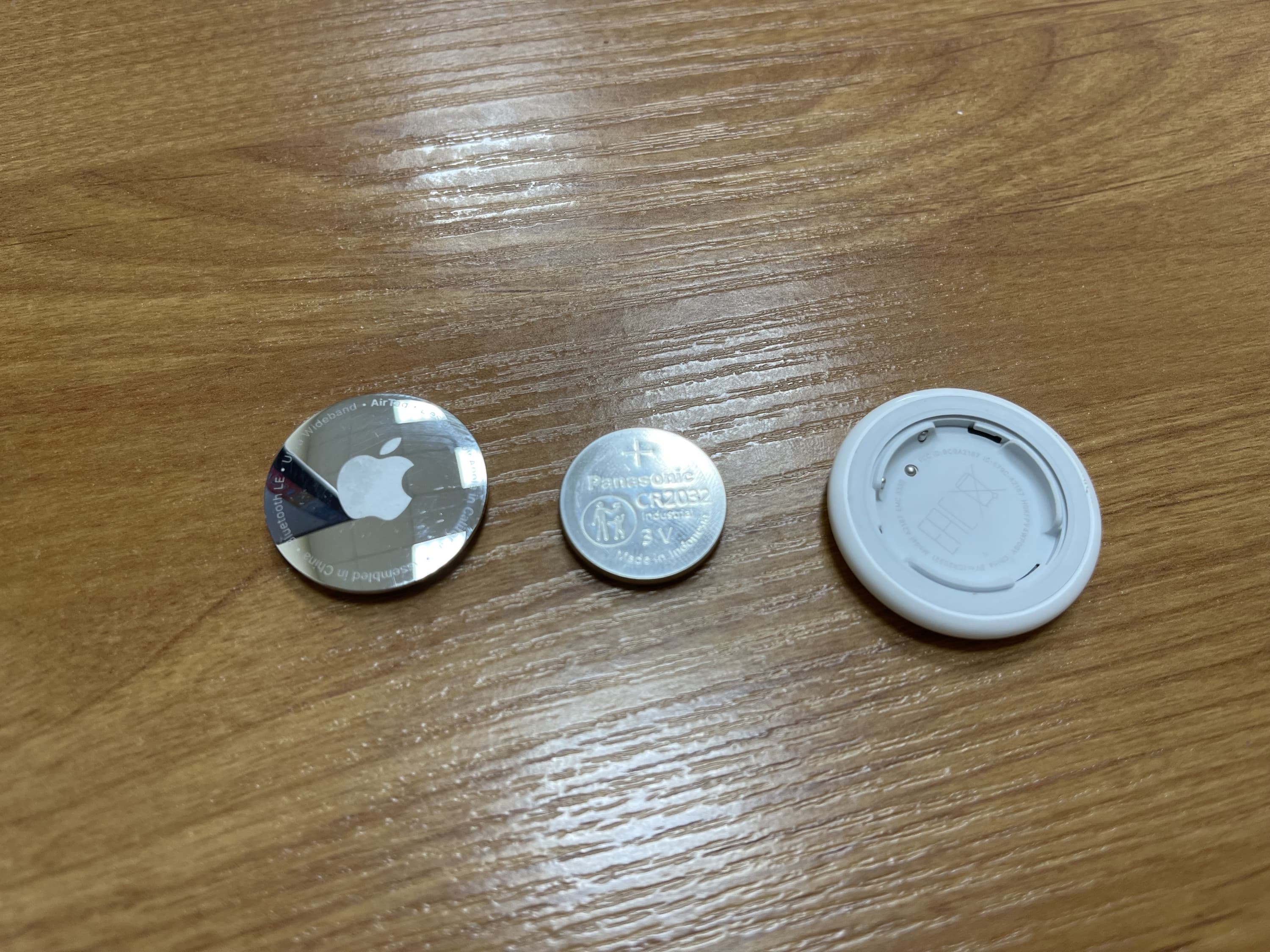 Работает AirTag от обычной часовой батарейки CR2032. В новом устройстве она уже вставлена, а чтобы она не разряжалась до момента попадания к покупателю, между батарейкой и контактами на белом основании вставлена тонкая, но прочная прозрачная пленка, наподобие тех, которыми защищены экран и спинка новых iPhone. Мы просто тянем за выступающий язычок — и пленка полностью вытаскивается, а батарейка касается контактов, и AirTag издает мелодичный звук, возвещая о своей готовности работать.