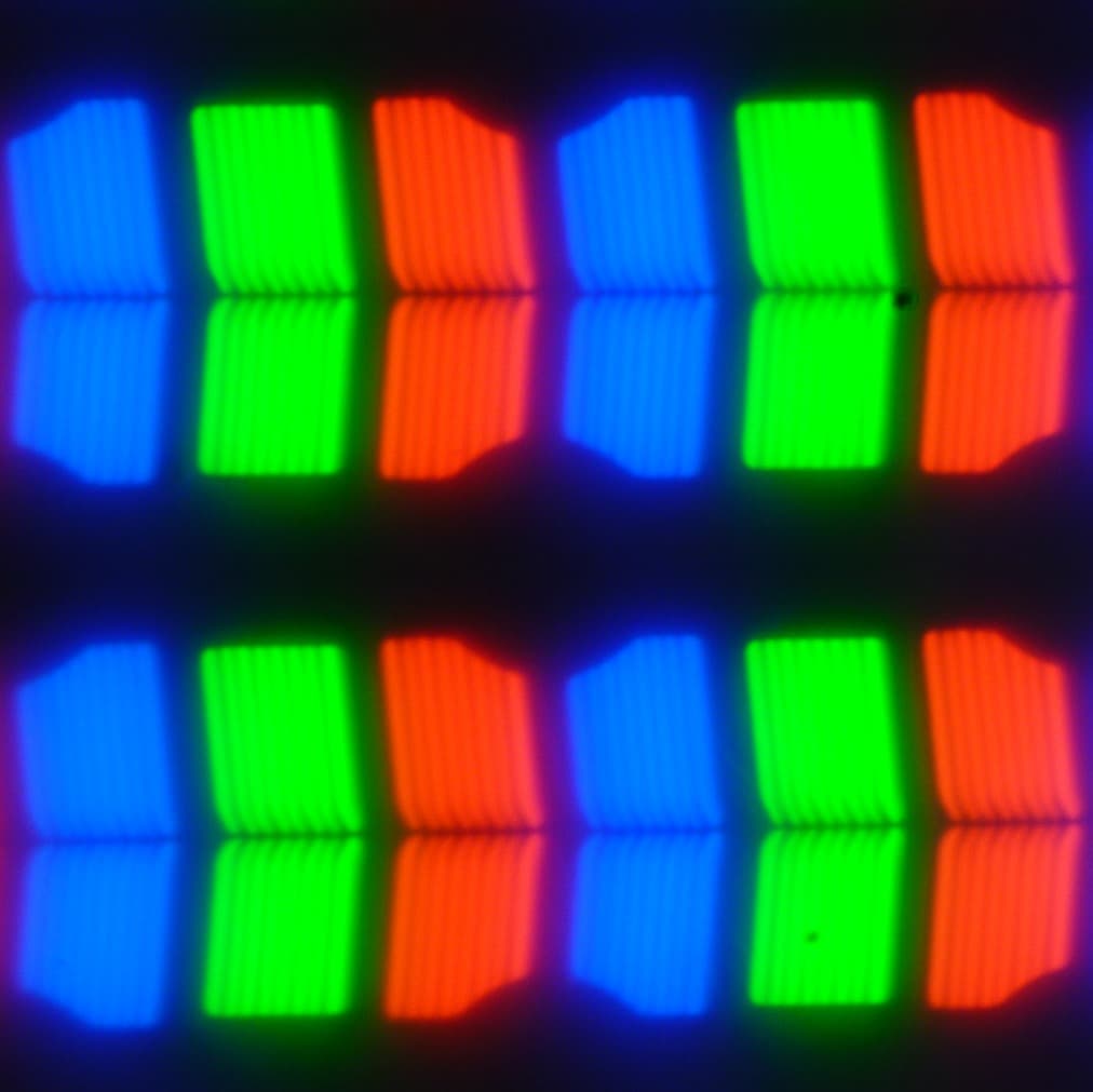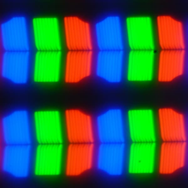 В данном Apple iMac используется матрица типа IPS. Микрофотографии демонстрируют типичную для IPS структуру субпикселей: