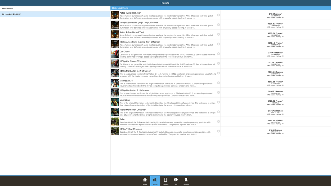 Далее у нас тестирование 3D-графики, и первым идет бенчмарк GFX Benchmark Metal.