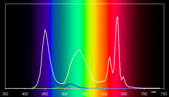 Спектры показывают, что программная коррекция в нужной степени подмешивает основные цвета друг к другу: