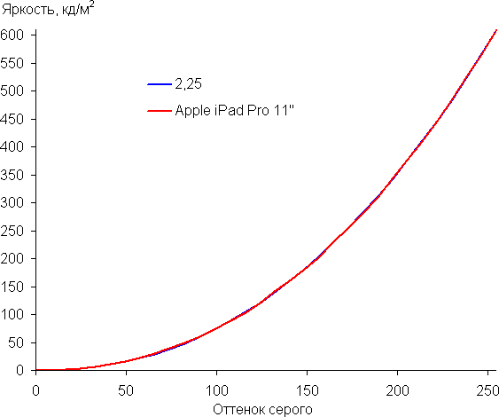 Присутствует функция True Tone, которая, если ее включить, подстраивает цветовой баланс под условия окружающей среды. К примеру, мы ее активировали и поместили планшет под светодиодные светильники с холодным белым светом, получив в итоге значения 5,5 для ΔE и 6900 К для цветовой температуры. Под галогеновой лампой накаливания (теплый свет) эти показатели составили 3,5 и 6050 К, то есть цветовая температура стала ниже. Функция работает так, как и ожидалось. Отметим, что сейчас сложившимся стандартом является калибровка устройств отображения к точке белого в 6500 К, но в принципе, коррекция под цветовую температуру внешнего света может принести пользу, если хочется добиться лучшего соответствия изображения на экране с тем, что видно на бумаге (или на любом носителе, на котором цвета формируются за счет отражения падающего света) в текущих условиях.