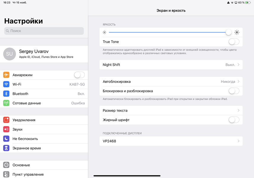 Разумеется, в этом устройстве Apple есть уже привычная функция Night Shift, которая ночью делает картинку теплее (насколько теплее — указывает пользователь). Описание того, почему такая коррекция может быть полезной, приведено в статье про iPad Pro 9,7″. В любом случае, при развлечении с планшетом или планшетом на ночь глядя лучше снизить яркость экрана до минимального, но еще комфортного уровня, а желтить экран настройкой Night Shift нет никакого смысла.