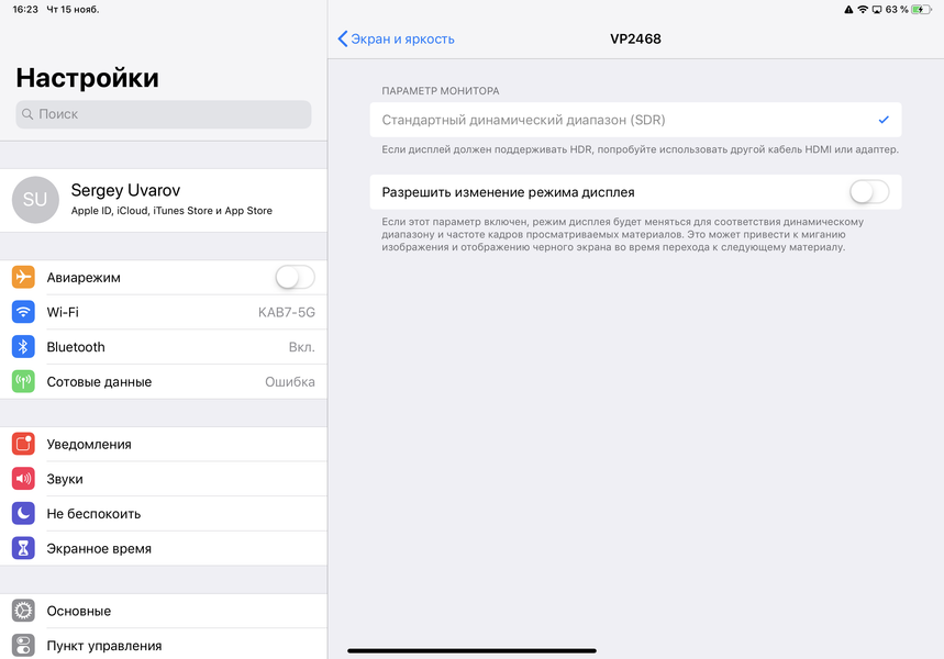 Также должен поддерживаться вывод в HDR, но мы тестировали вывод только в SDR. Режим работы один: просто дублирование экрана на внешнем мониторе. Картинка выводится в центре области отображения с черными полями по периметру. Поддерживается вывод как в портретной, так и в ландшафтной ориентации. Отметим, что одновременно с выводом изображения можно по USB или по Bluetooth подключать к планшету клавиатуру (мышь не поддерживается), превращая его в основу для рабочего места. Подключенные к адаптеру USB-накопители и карты памяти явно обнаруживаются, но как их использовать — не совсем понятно. По крайней мере в случае использования штатного зарядного устройства и данного адаптера сохраняется возможность зарядки планшета одновременно с подключением внешнего монитора или телевизора.