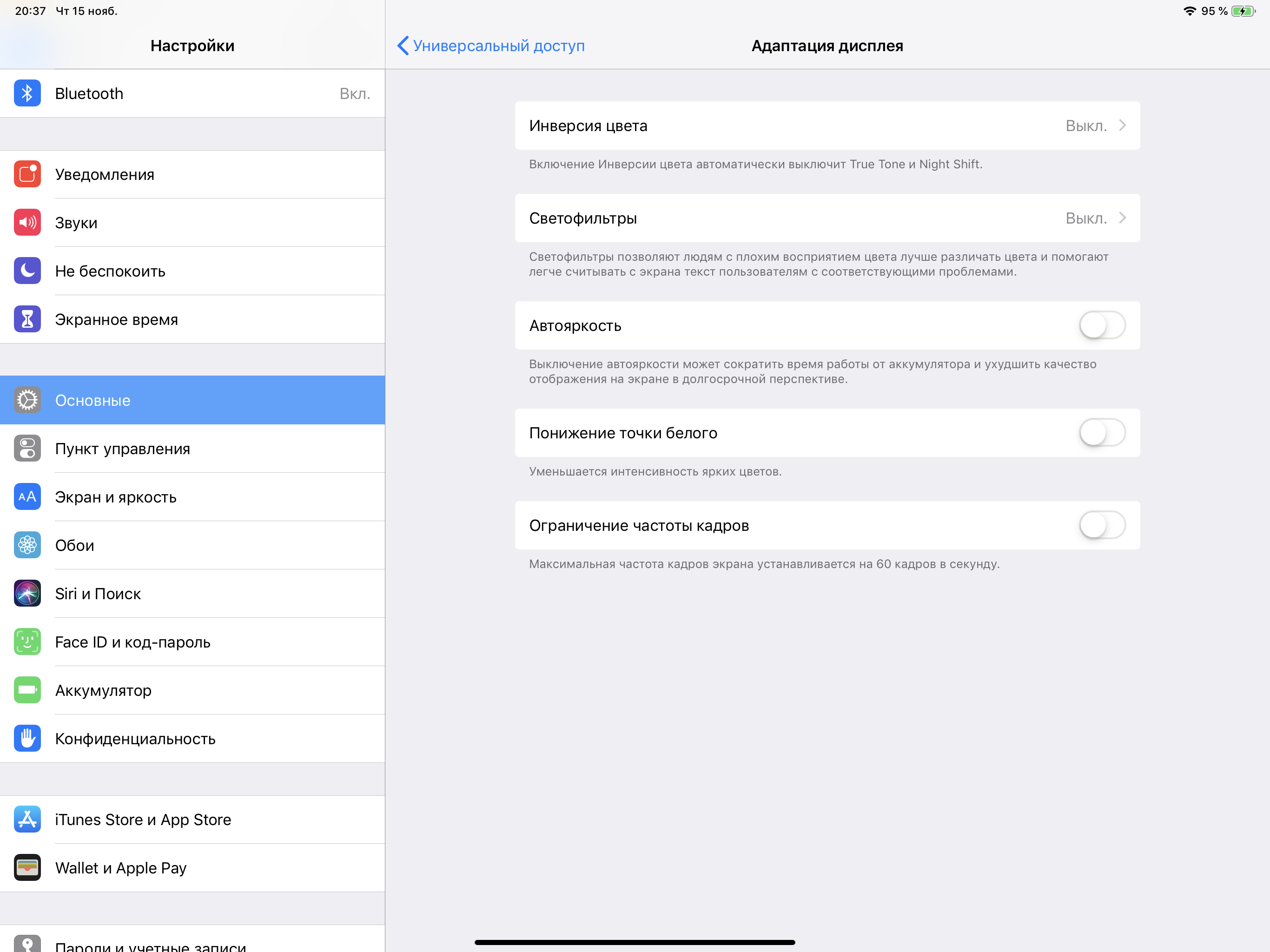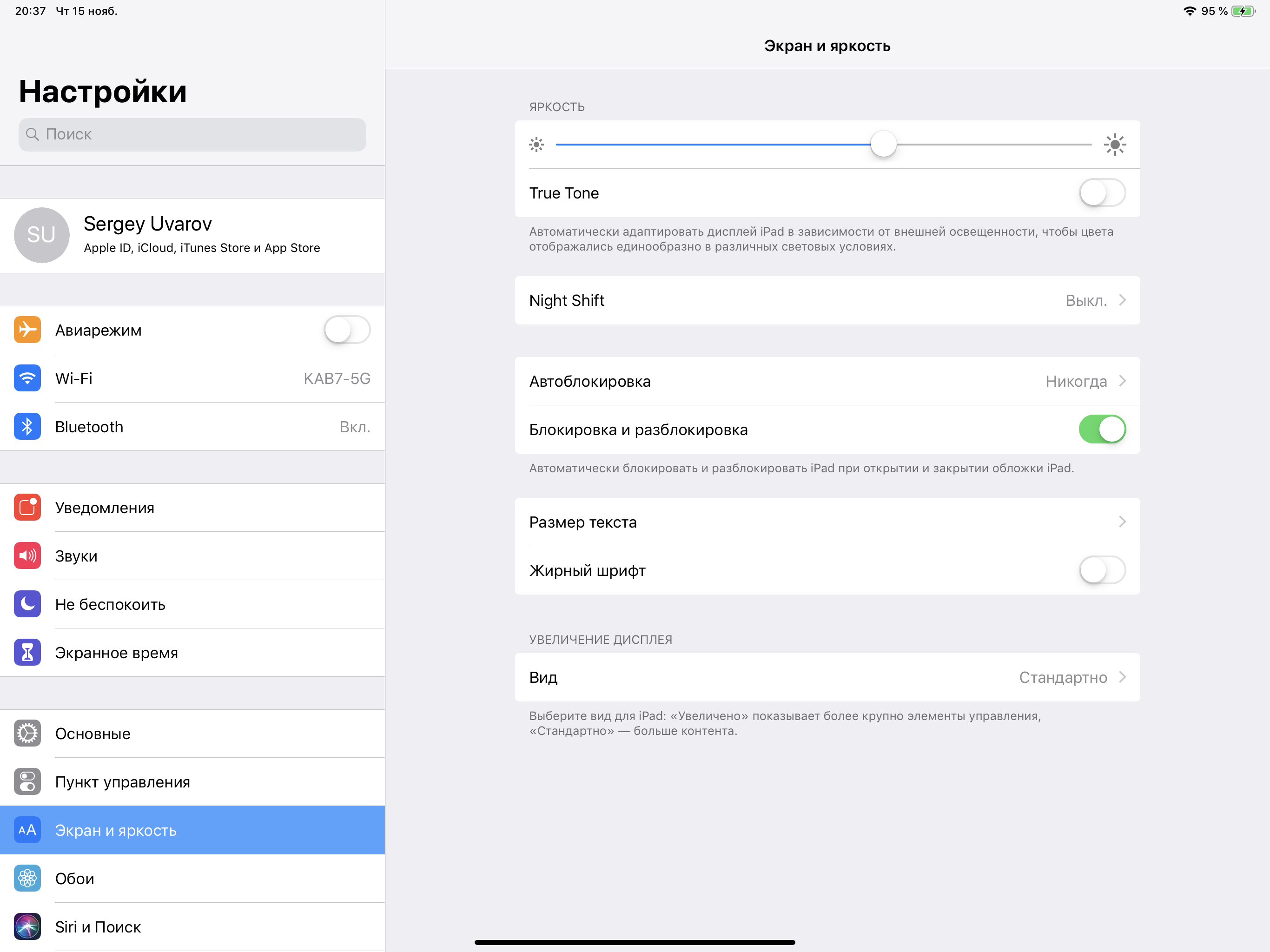 Разумеется, в этом устройстве Apple есть уже привычная функция Night Shift, которая ночью делает картинку теплее (насколько теплее — указывает пользователь). Описание того, почему такая коррекция может быть полезной, приведено в указанной статье про iPad Pro 9,7″. В любом случае, при развлечении с планшетом или планшетом на ночь глядя лучше снизить яркость экрана до минимального, но еще комфортного уровня, желтить экран настройкой Night Shift нет никакого смысла.