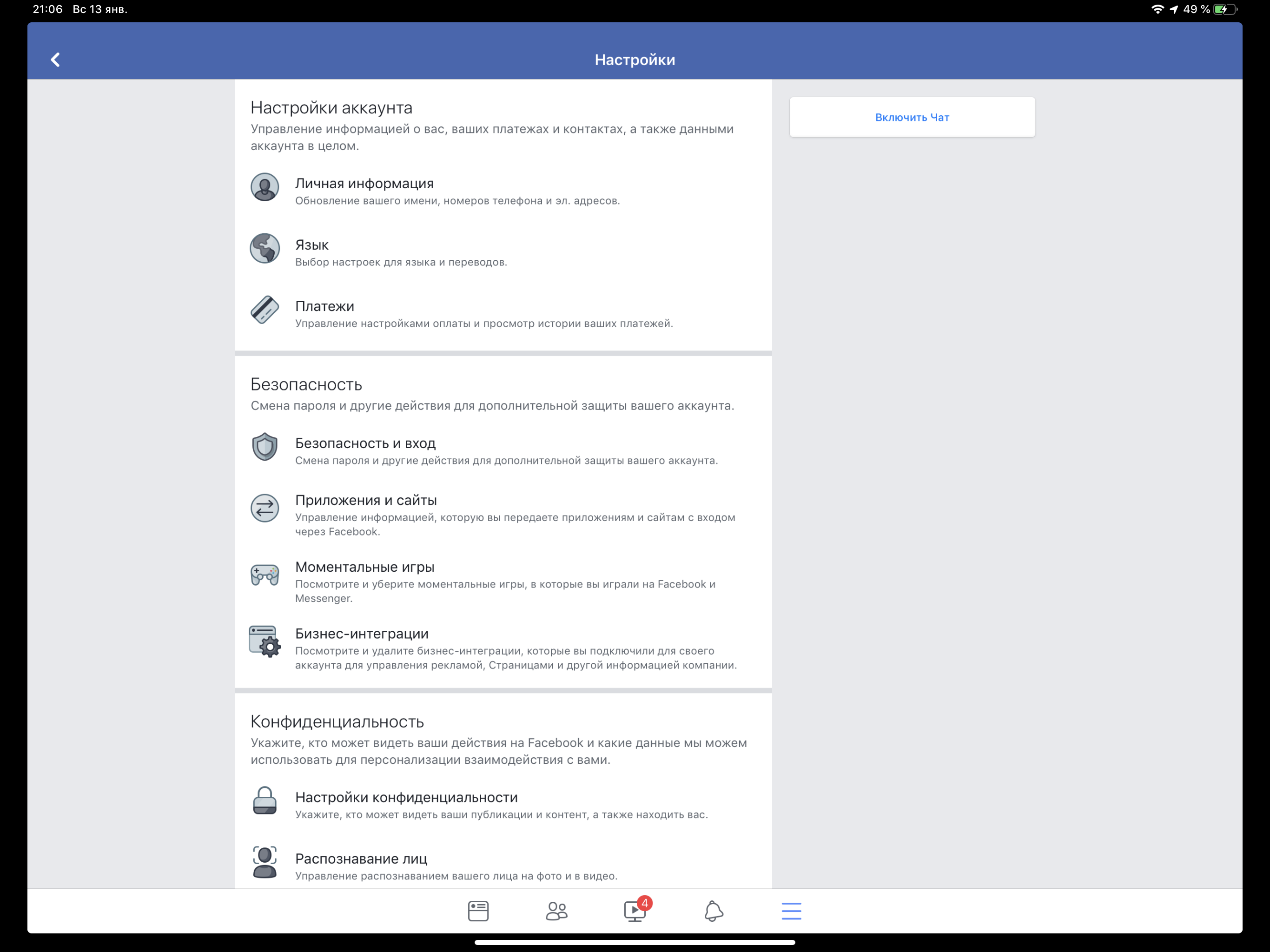 С момента выпуска планшета на рынок прошло уже достаточно времени, чтобы у разработчиков стороннего ПО была возможность учесть новые требования. Однако, что интересно, такие гиганты, как Facebook и VK, не стали улучшать внешний вид своих приложений на iPad Pro 12,9″ (2018). Ниже — скриншоты официального приложения Facebook на новом и прошлогоднем планшетах.
