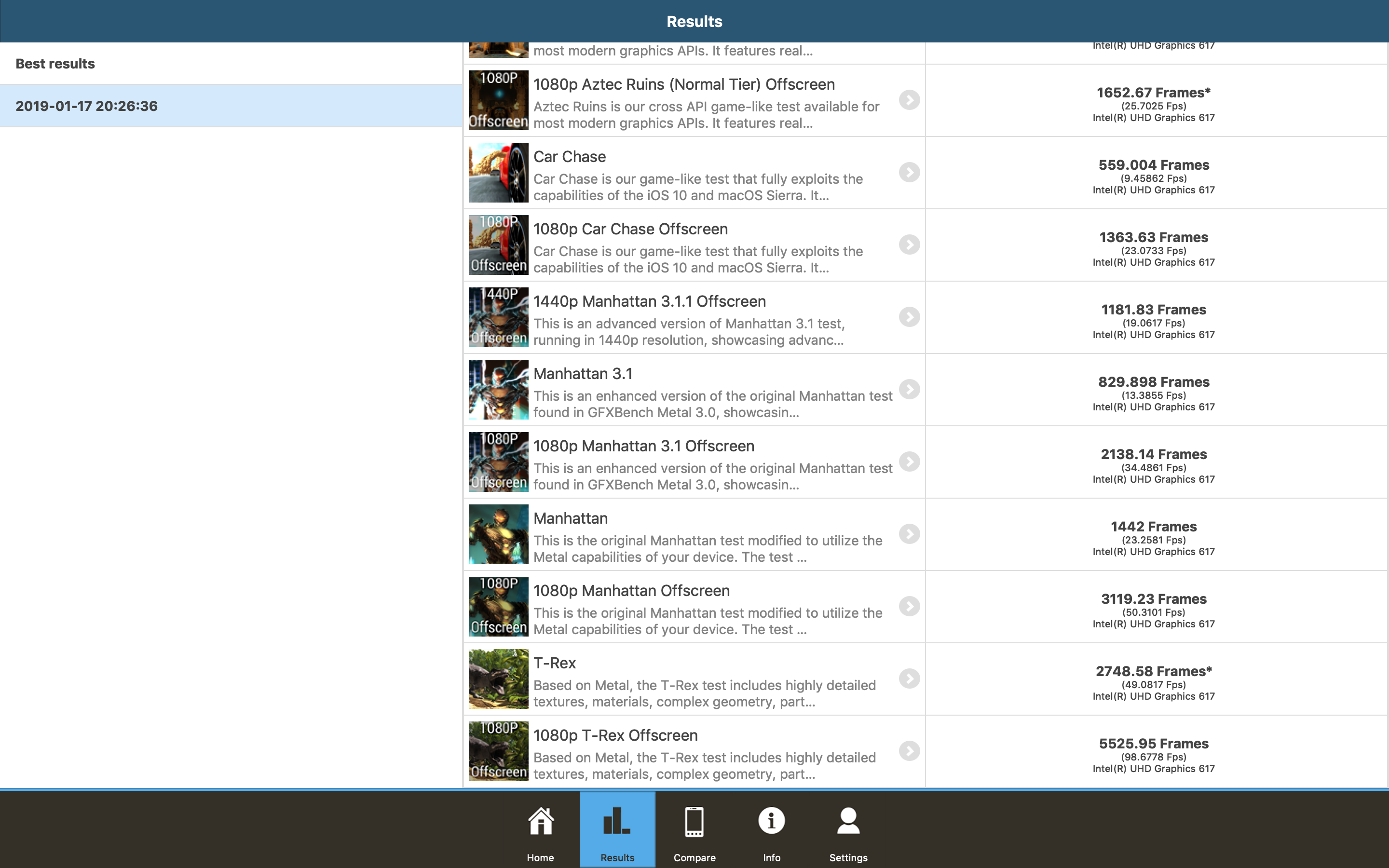 Далее у нас тестирование 3D-графики, и первым идет бенчмарк GFX Benchmark Metal.