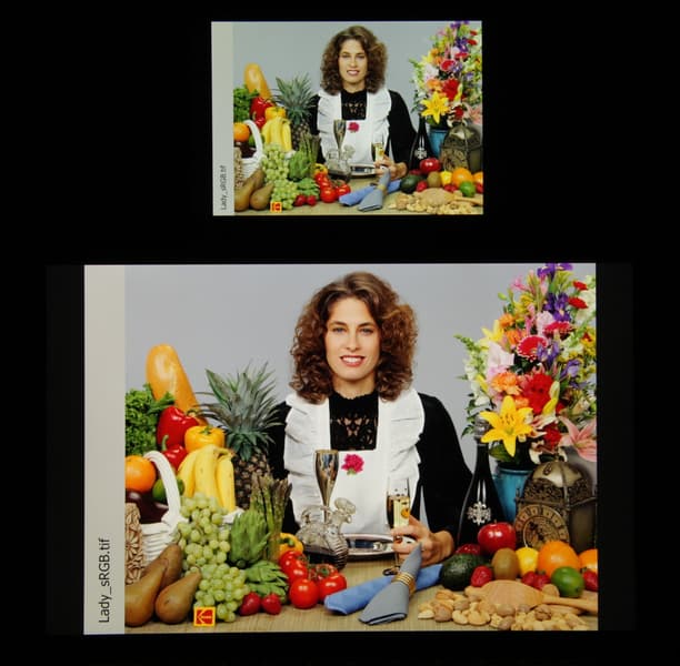 Цветовой охват в случае тестовых изображений без профиля или с профилем sRGB практически равен sRGB:
