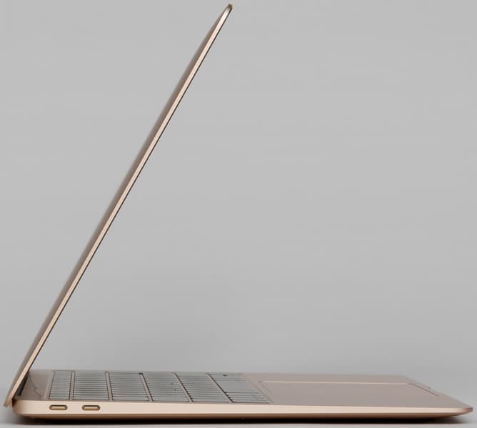 MacBook Air заметно больше, чем 12-дюймовая модель, но разница в габаритах и массе вполне пропорциональна увеличению площади дисплея. В целом, ноутбук все равно очень тонкий и компактный.