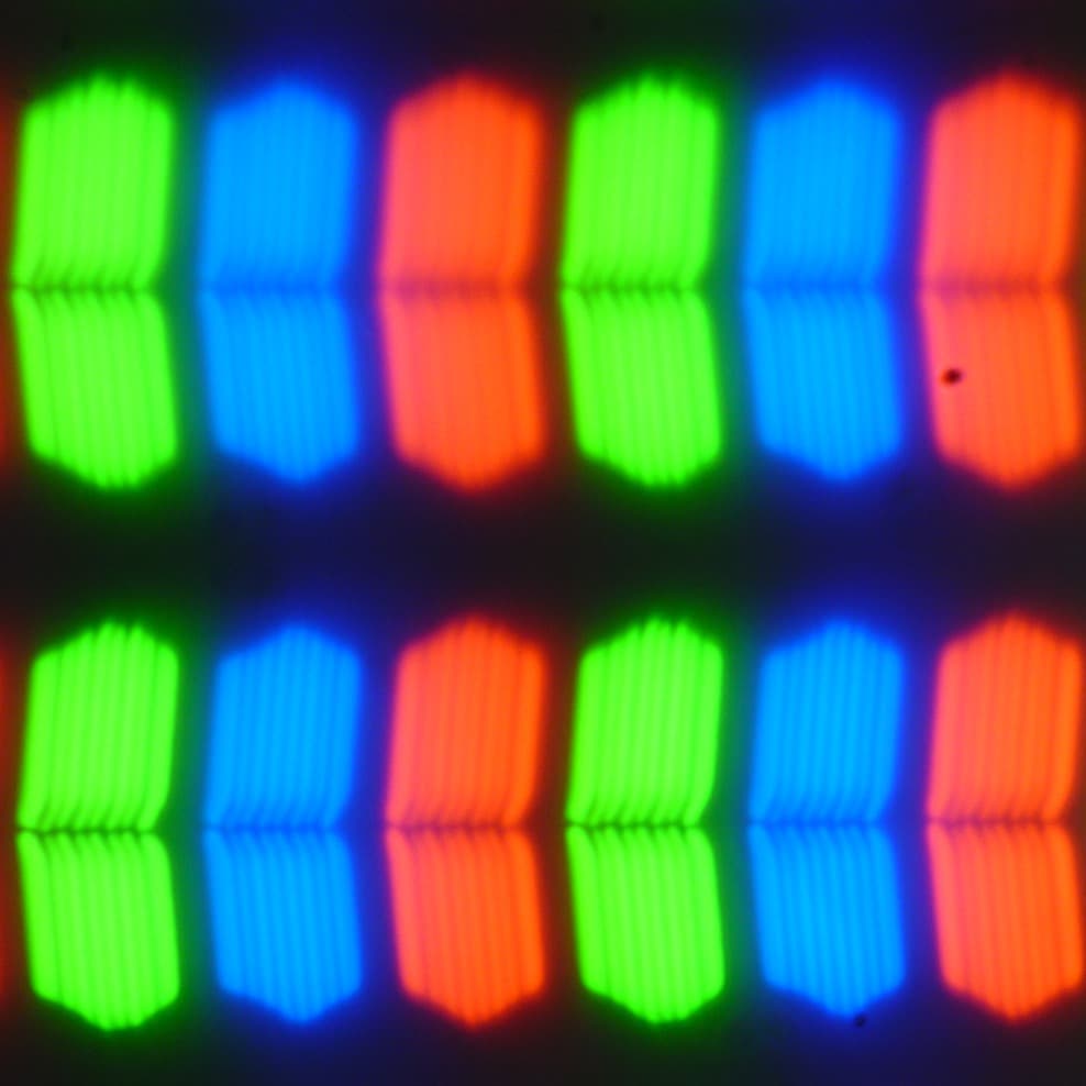 В данном MacBook Air используется матрица типа IPS. Микрофотографии демонстрируют типичную для IPS структуру субпикселей:
