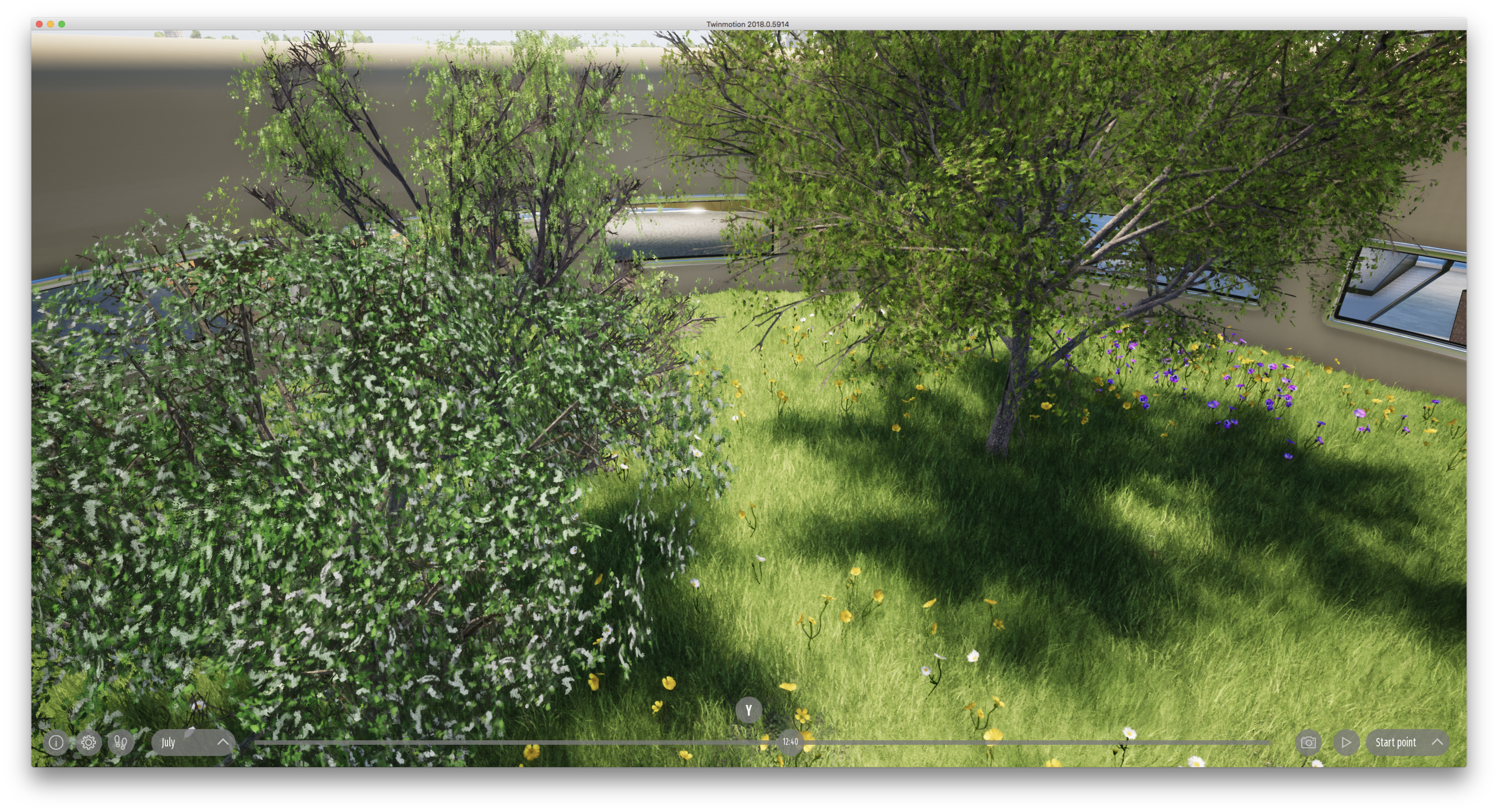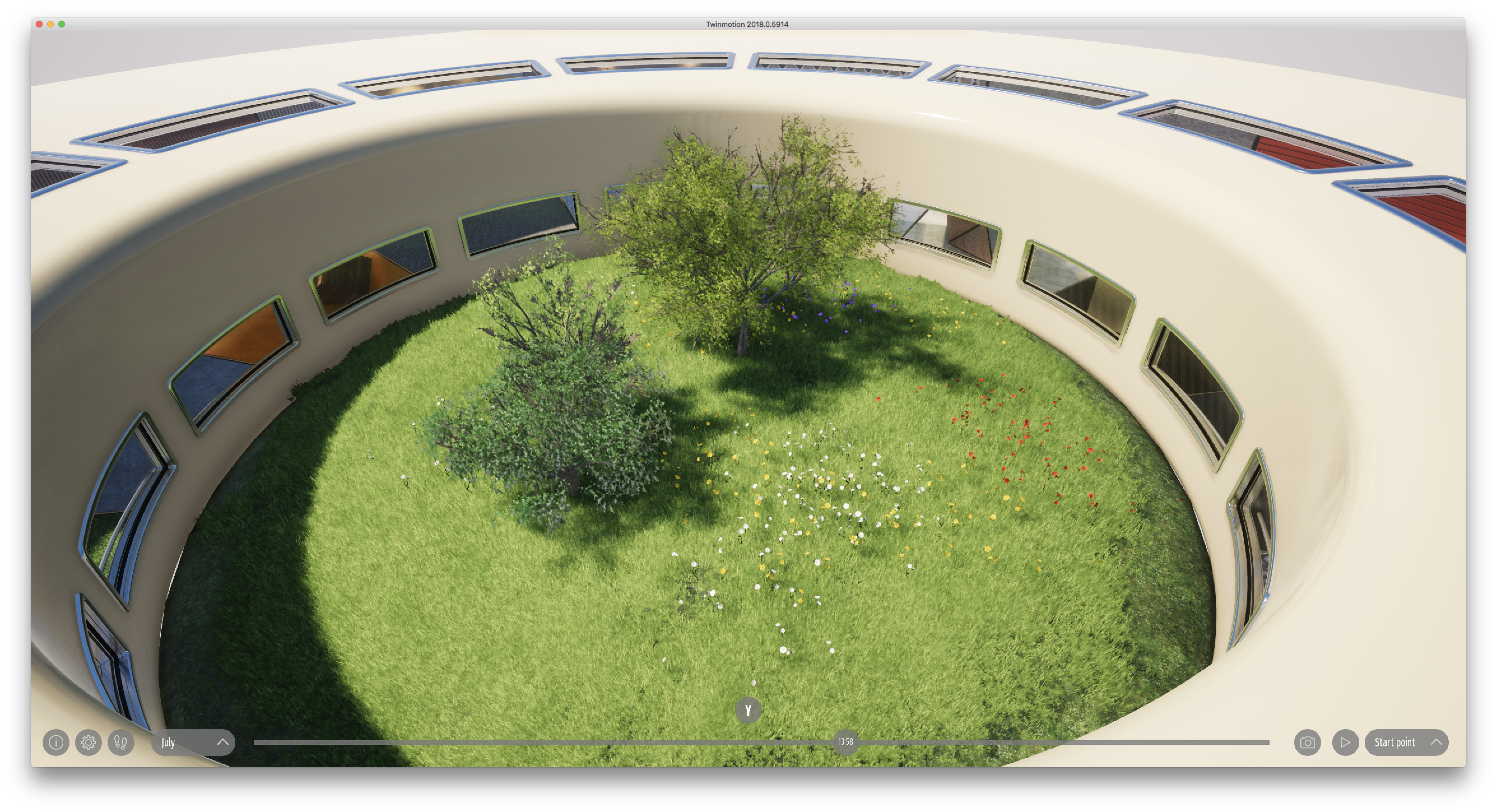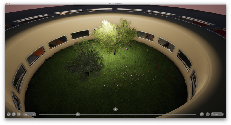 Куда интереснее было попробовать нагрузить моноблок иными способами, связанными с 3D и воспроизведением тяжелого контента. И здесь нам оказалось полезно профессиональное решение Twinmotion 2018, созданное для визуализации архитектурных проектов. Например, вы можете загрузить туда CAD-модель, а Twinmotion создаст на базе движка Unreal Engine фотореалистичное изображение того, как будет выглядеть постройка в реальности. Причем вы можете в реальном времени менять время суток, погоду (дождь, снег и пр.), сезон, добавлять или убирать зелень (вплоть до цветов на газоне), наполнять проезжую часть движущимися машинами (плотность и скорость потока вы, разумеется, тоже задаете сами). Ниже — примеры изображений, создаваемых Twinmotion.