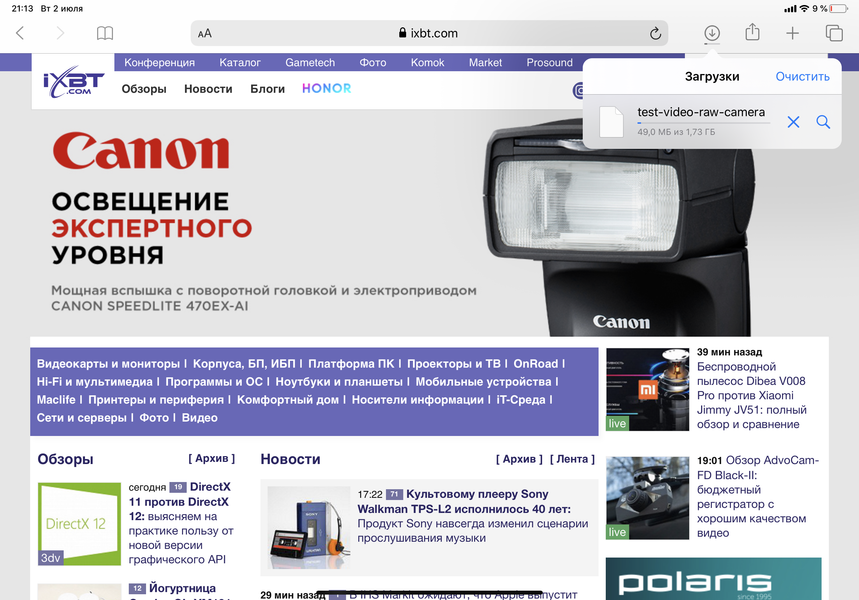 Сюрпризы в плане возможностей работы с файлами продолжаются и в браузере. Safari претерпел самые серьезные изменения за всю историю iPad — теперь это, фактически, десктопный браузер, в котором по желанию пользователь может открыть мобильную версию. Но что еще более неожиданно, в нем появился полноценный менеджер загрузки файлов, как в macOS.