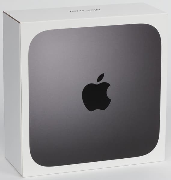 Mac mini поставляется в квадратной коробке, почти всю фронтальную поверхность которой занимает изображение компьютера.
