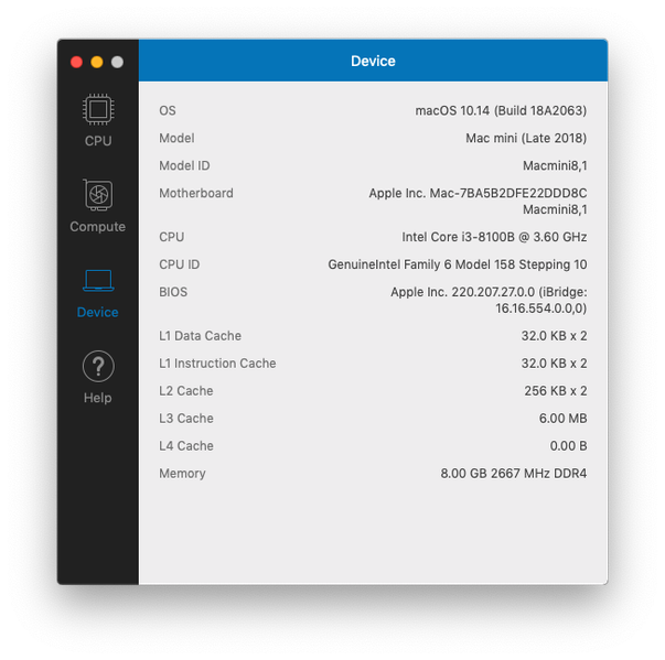 | Mac mini (Late 2018) | MacBook Pro 13″ (Mid 2018) | MacBook Pro 15″ (Mid 2018) | |