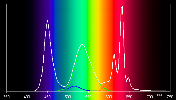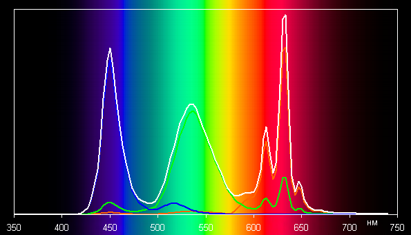 Спектры показывают, что программная коррекция в нужной степени подмешивает основные цвета друг к другу: