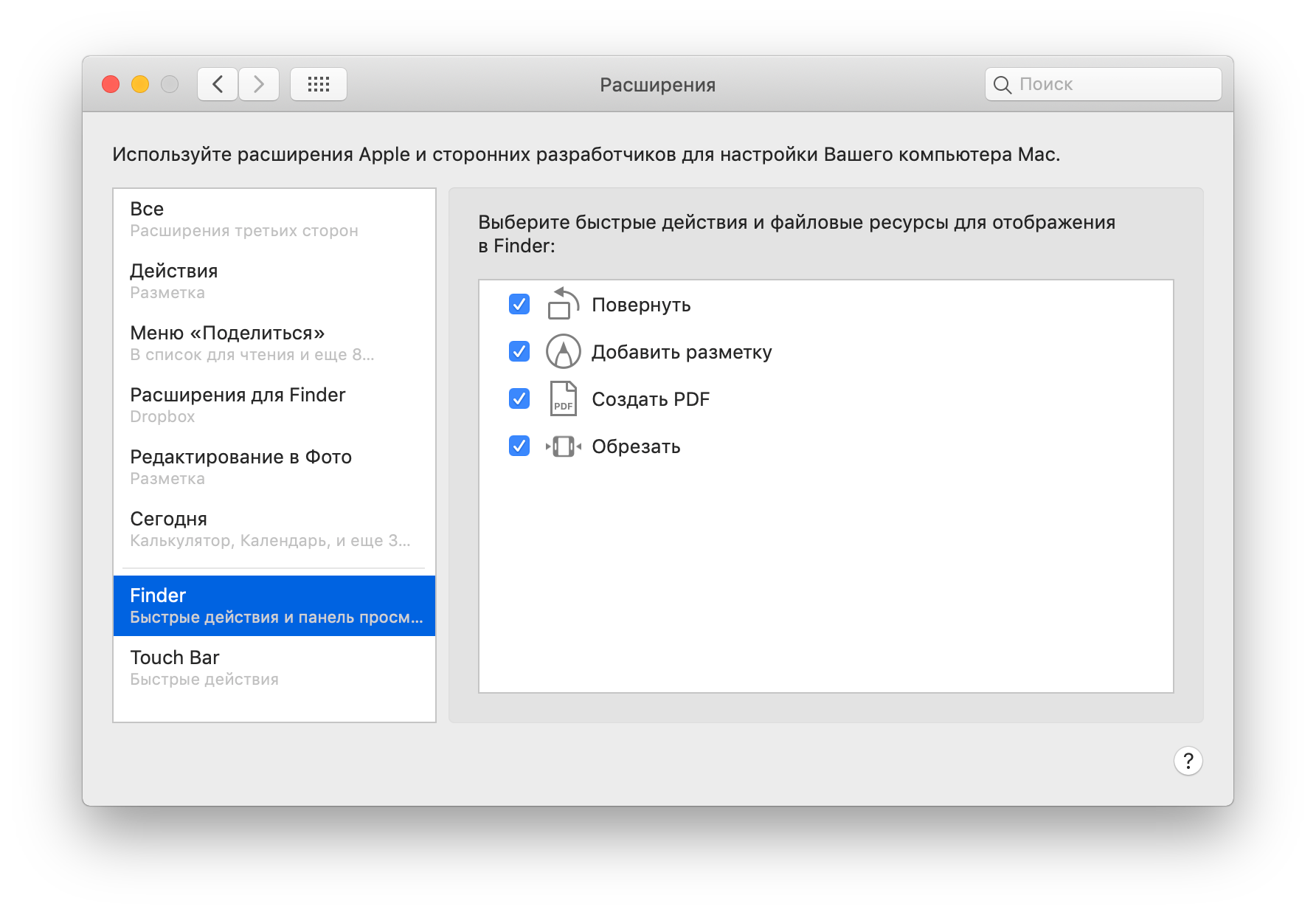 В Системных настройках можно указать, какие опции редактирования будут доступны в Finder.