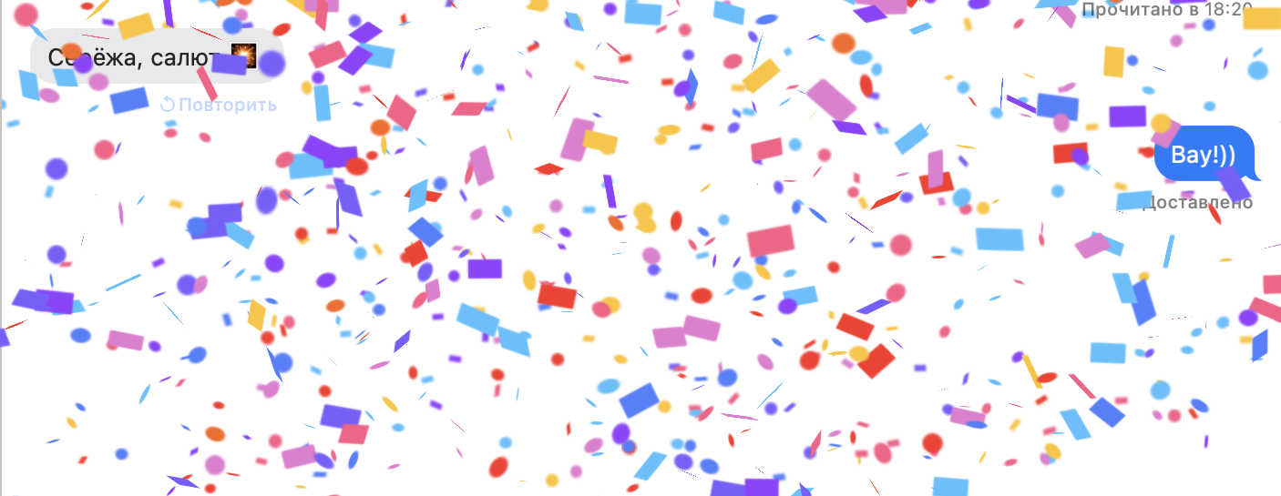 Два других предустановленных приложения, которые были существенно обновлены, это Карты и Сообщения. Здесь, однако, картина для российских пользователей вовсе не столь радужна. Начнем с Сообщений. На первый взгляд, все выглядит интересно. Теперь можно закреплять беседы наверху, делать упоминания в групповых чатах, устанавливать фото, эмоджи и мемоджи для групп, осуществлять более удобный поиск по беседам, отправлять эффекты — например, конфетти.