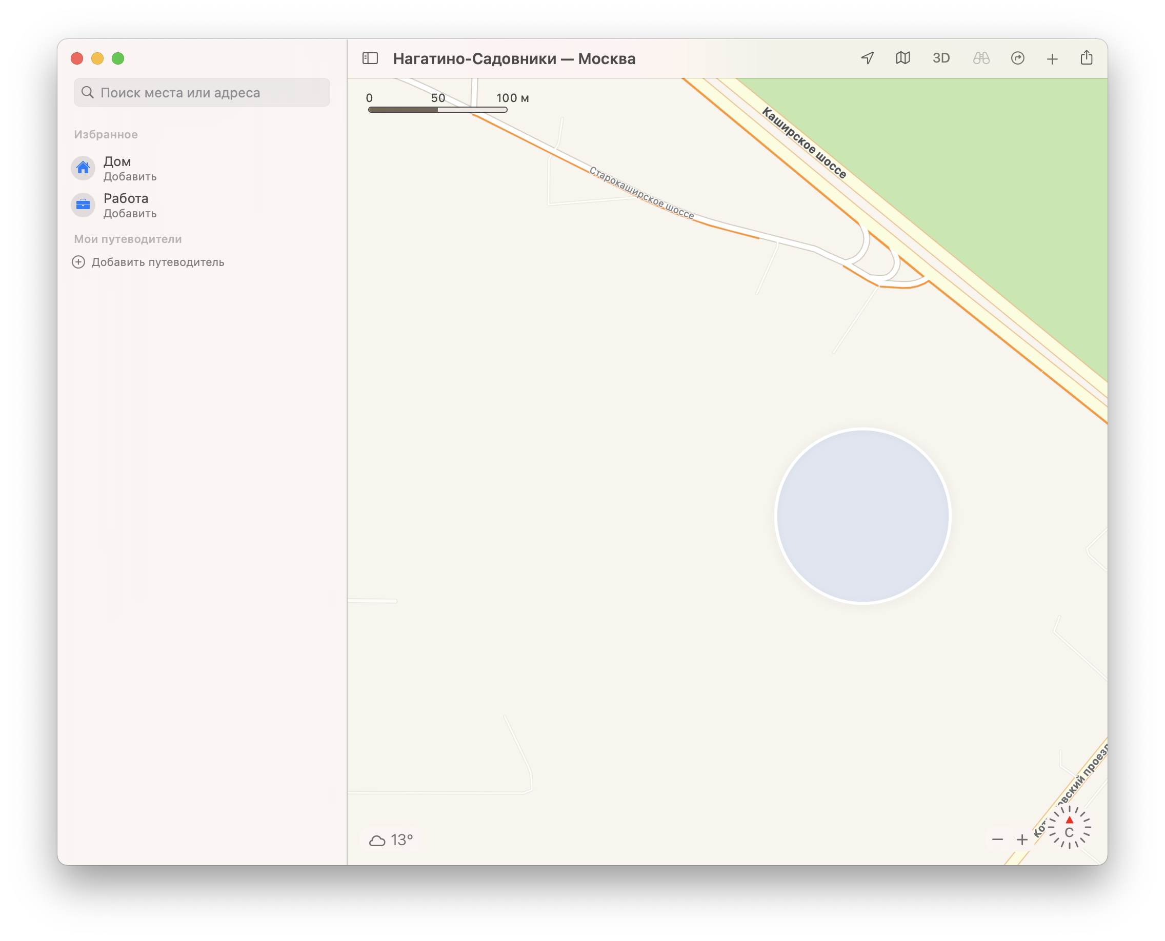 Но даже если не брать новшества как таковые и посмотреть на базовую функциональность, Apple Maps по-прежнему не умеют то, что для Яндекс.Карт и Google.Maps давно само собой разумеющееся. Начнем с того, что в Apple Maps попросту нет многих домов. А те, что есть, обозначены просто названиями, без контуров строения. На скриншоте ниже — место, в котором располагается офис iXBT.com. И нет, мы не в чистом поле сидим :)