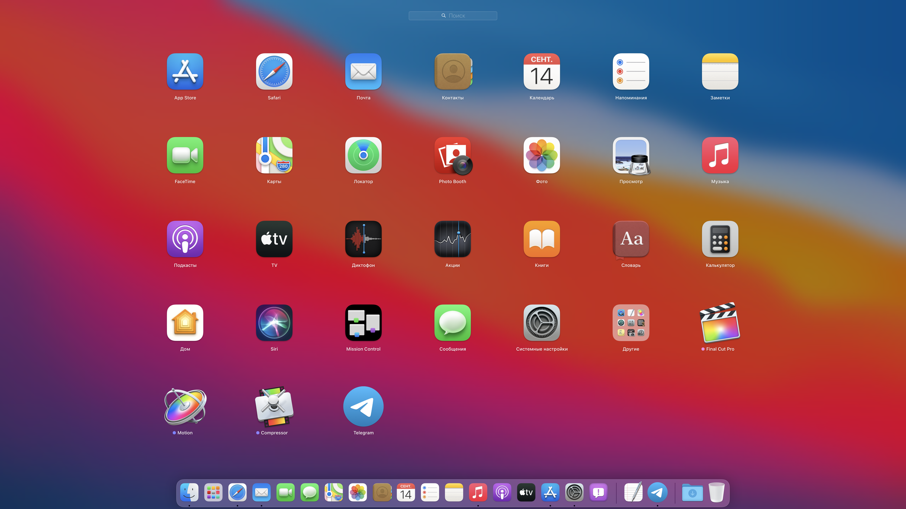 Первое, что видишь, когда запускаешь компьютер с только что установленной Big Sur — это обновленный дизайн. С одной стороны, вроде бы ничего прям такого радикального нового нет, но с другой — вид иконок изменился. Да и базовая заставка рабочего стола недвусмысленно свидетельствует о том, что подход к облику ОС решено было пересмотреть.