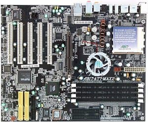 Это уже не первая плата из новой серии MAX, но здесь компания немного отклонилась в сторону от первоначального курса — полного отсутствия всех Legacy-портов на плате. На этот раз мы видим разъемы PS/2 на своем привычном месте, да и слотов PCI, видимо, в соответствии с пожеланиями покупателей, стало побольше.