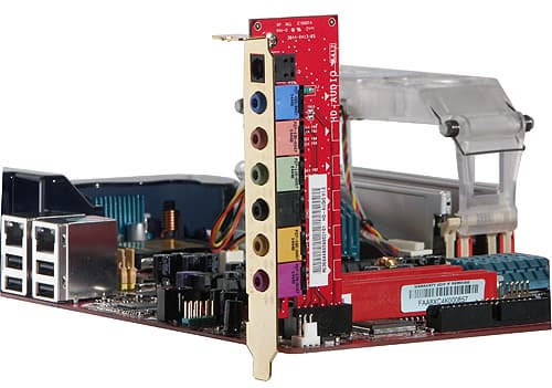 - 6 аудиоразъемов (Center/Sub, Rear, Side, Mic-In, Line-In, Front) на специальной плате, вставляемой в специальный же разъем.
