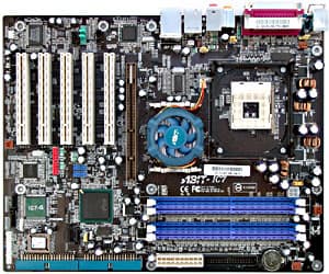 Краткие характеристики платы: разъемы памяти — 4 DDR SDRAM; слоты расширения — AGP Pro/ 5 PCI; порты ввода/вывода — 1 COM/ LPT/ 2 PS/2/ 3 FireWire/ 8 USB 2.0; размеры — 305х245 мм.