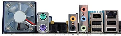 - 5 разъемов для подключения вентиляторов (два из них с возможностью контроля количества оборотов, к одному из регулируемых разъемов подключен вентилятор системы ABIT OTES, к одному из не регулируемых разъемов подключен вентилятор на северном мосту чипсета).