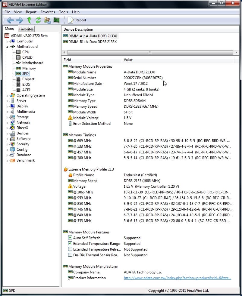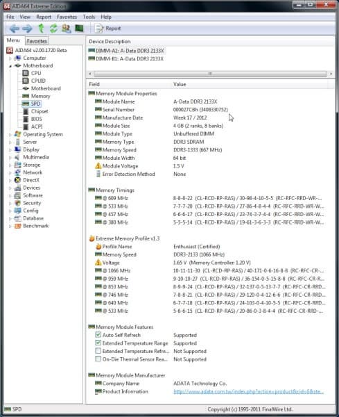 Модули поддерживают профиль XMP, старшим режимом является DDR3-2133. Тайминги рекомендованы достаточно жесткие: 10-11-11-30, напряжение 1,65 В для самих модулей и умеренные 1,20 В для контроллера памяти. Самое примечательное, что память работает с этими таймингами и на гораздо большей частоте.