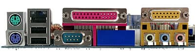 Достаточно «бедная» задняя панель; производитель предпочел вынести большинство разъемов на дополнительные планки. В общем-то, ничего страшного в этом нет, хотя для сборщика системы — некоторое количество дополнительной мороки.