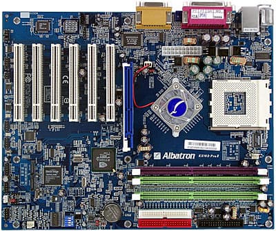 Разведенных, но нераспаянных элементов на этой плате, как и на всех моделях Pro II (они являются топовыми в своих линейках), нет. На базе той же PCB Albatron выпускает еще одну плату — KX18D Pro. Она отличается от рассматриваемой Albatron KX18D Pro II использованием менее функционального южного моста nForce2 MCP (на Pro II установлен MCP-T) и, соответственно, не имеет на борту контроллера FireWire. Кроме того, KX18D Pro не оснащается дополнительной микросхемой Serial ATA RAID.
