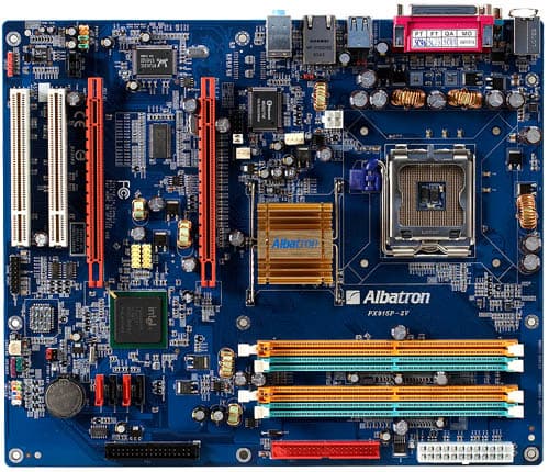 - Процессорный сокет (Socket 775, официальных данных о поддержке процессоров на момент подготовки статьи еще не было, но можно предположить, что, как и для большинства прочих моделей Albatron (на i915P), будут поддерживаться процессоры Celeron D (до моделей 350/351) и Pentium 4 (до моделей 570 и 660));