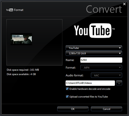 Действительно, для формата H264 доступно как кодирование, так и декодирование силами чипсета. В качестве материала для обработки был взят 10-минутный отрывок фильма Iron Man (1920×1080, битрейт: 30 МБ/c), а в качестве профиля "iPod Classic" (с разрешением 640x360). Также было выбрано кодирование видео в формате DV (720×576) в профиль "YouTube" (H264, 480×360).