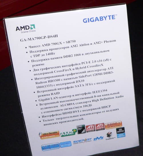 Компания Gigabyte, уже порадовавшая нас весьма интересными платами на чипсете AMD 780G (и в полноразмерном дизайне, в том числе с поддержкой CrossFire, и компактной с видеобуфером), судя по характеристикам MA790GP-DS4H, готовится закрепить успех с выпуском чипсета AMD 790GX.