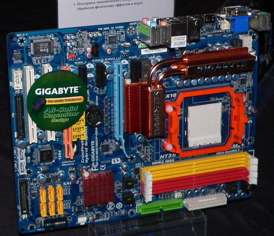 Диапазон графических возможностей, как и следовало ожидать, впечатляет. Сама плата уже имеет стартовые возможности для поддержки современных игр (на уровне младших видеокарт с поддержкой DirectX 10) и полностью разгружает центральный процессор при видеодекодировании (в чем не приходится сомневаться, учитывая что основа графического ядра взята из 780G). В качестве пары в режиме Hybrid CrossFireX в данном случае уже рекомендуется не Radeon HD 3450, а HD 3470.