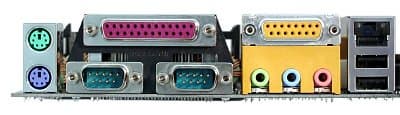- звуковой, реализованный на базе возможностей чипсета и AC'97-кодека Avance Logic ALC650, с разъемом для подключения фронтальных аудиовходов/выходов и возможностью подключения аудиосистем 5.1;
