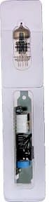 - Упаковку: коробка, выполненная в темных тонах, с концептуальным изображением и дополнительным отделением, содержащим собственно вакуумную лампу;
