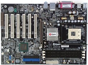Краткие характеристики платы: разъемы памяти — 3 DDR SDRAM; слоты расширения — AGP/ 6 PCI/ CNR; порты ввода/вывода — 2 COM/ LPT/ 2 PS/2/ 6 USB 2.0; размеры — 305х220 мм.