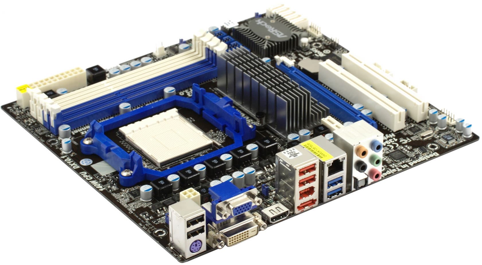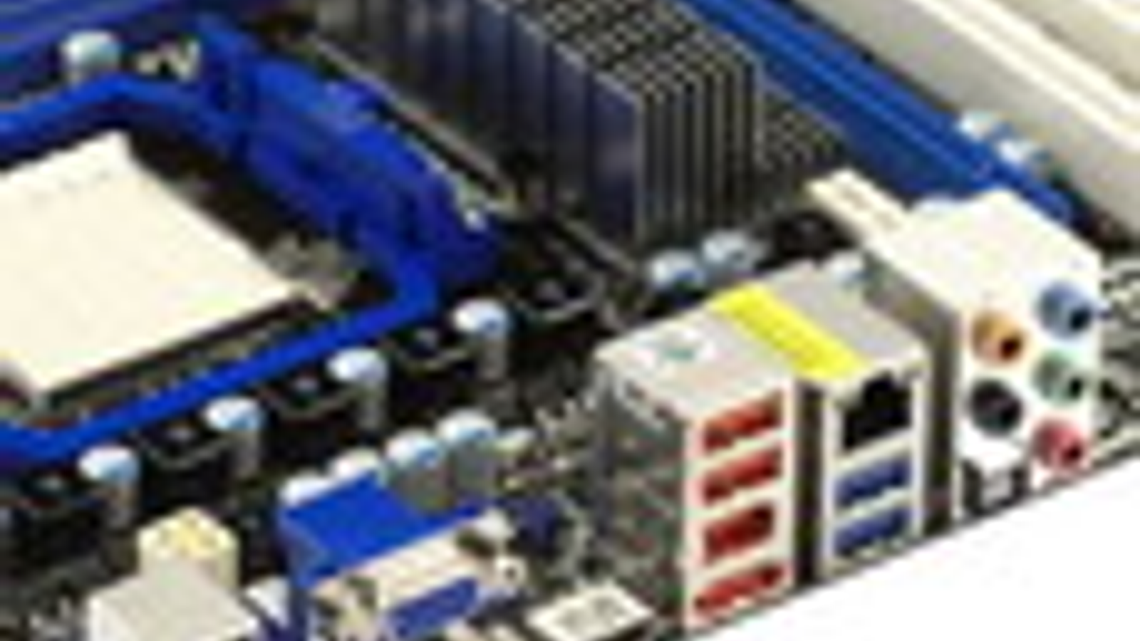 В действительности плата имеет даже не microATX-формат, а усечена как по ширине, так и по длине. Тем не менее разработчикам удалось расположить порты и разъемы таким образом, что даже при установке крупногабаритной видеокарты с двухслотовой системой охлаждения к ним не затрудняется доступ. И при этом все периферийные разъемы пунктуально снабжены бортиками. Из устаревших типов интерфейсов пользователь сможет вывести с помощью дополнительно приобретаемых планок COM-порт и инфракрасный датчик. Надо отметить наличие добротной металлической планки с обратной стороны платы, фиксирующей рамку для процессорного кулера, так что можно быть спокойным при установке даже самых громоздких устройств охлаждения.