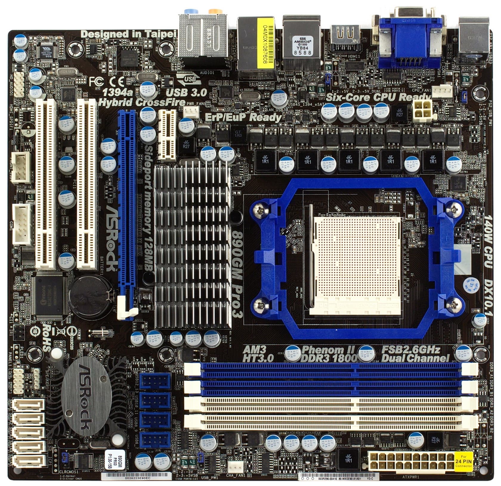В списке протестированных на совместимость перечислены все процессоры, выпущенные для разъема Socket AM3, в том числе и шестиядерные. В качестве оперативной памяти может быть установлено до 16 ГБ DDR3-800/1066/1333/1600. Для подключения накопителей установлено 5 внутренних портов SATA/300, которые могут объединяться в режимах RAID 0, 1, 0+1 и 5, еще один порт выведен в качестве eSATA на заднюю панель. Функциональность чипсета дополняют следующие контроллеры:
