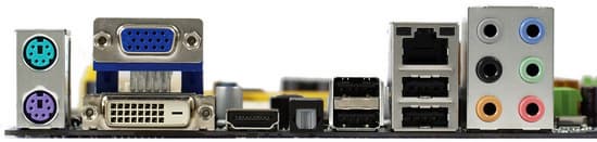 Впрочем, в первую очередь, заинтересоваться компактной платой на старшем интегрированном чипсете могут пользователи, которые планируют активно задействовать ее графическое ядро. И они наверняка одобрят наличие полного набора видеовыходов. Так же, как водится, на microATX плате находится место и для формально устаревших типов разъемов: в данном случае COM и ИК-портов (IrDA), а также флоппи-дисковода.