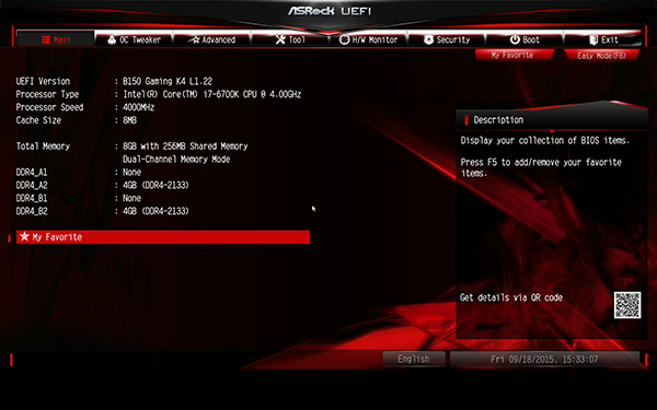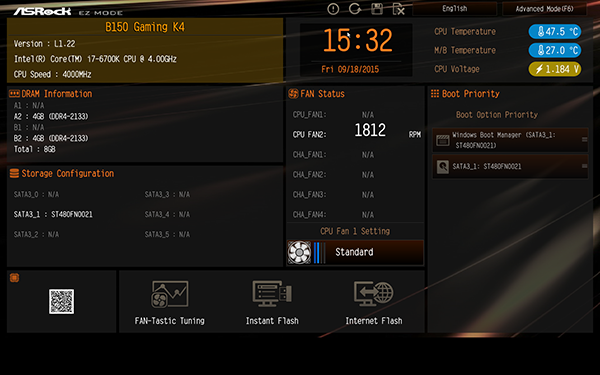 Итак, рассмотрим UEFI BIOS на плате ASRock Fatal1ty B150 Gaming K4 немного подробнее.