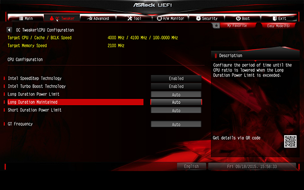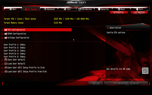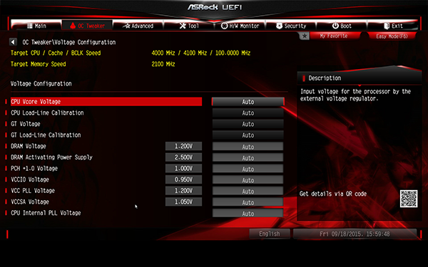 Вкладка OC Tweaker традиционно предназначена для разгона процессора и памяти. Однако, в варианте платы ASRock Fatal1ty B150 Gaming K4, конечно же, ни о каком разгоне речь не идет.
