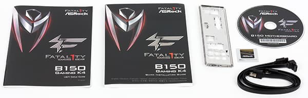 Если сравнивать комплект поставки платы ASRock Fatal1ty Z170 Gaming K4 и ASRock Fatal1ty B150 Gaming K4, то разница лишь в том, что в комплекте платы ASRock Fatal1ty Z170 Gaming K4 четыре SATA кабеля, ну а в более дешевом варианте ASRock Fatal1ty B150 Gaming K4 их только два.