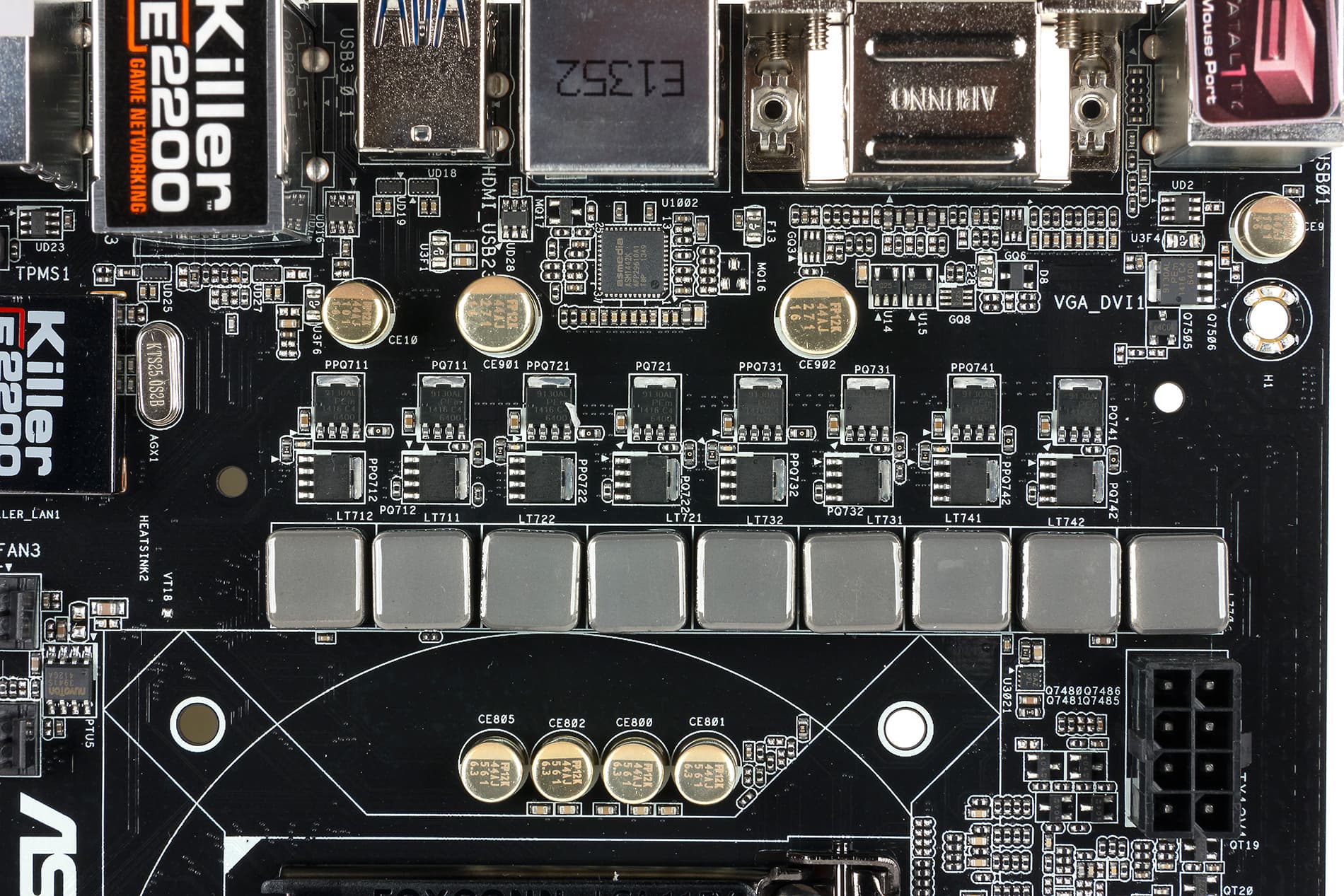 Регулятор напряжения питания процессора является 8-канальным и основан на 4-фазном PWM-контроллере Intersil ISL95820. Сами каналы питания построены с применением NexFet MOSFET-транзисторов.