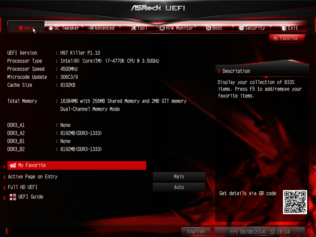 Ну и заключение рассмотрим особенности настройки платы ASRock Fatal1ty H97 Killer через UEFI BIOS.