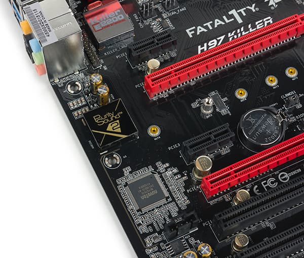 Аудиоподсистема материнской платы ASRock Fatal1ty H97 Killer включает в себя 8-канальный (7.1) HDA-аудиокодек Realtek ALC1150. Кроме того, имеется отдельный усилитель для наушников TI NE5532(с поддержкой наушников с импедансом 600 Ом) и используются особые аудиоконденсаторы с золотым напылением (Nichicon Fine Gold Series Audio Caps). Сам аудиокодек кодек, усилитель и часть «обвязки» закрыты металлическим чехлом с надписью Purity Sound 2 (маркетинговое название аудиоподсистемы). Ну а на задней панели платы предусмотрено пять аудиоразъемов типа миниджек (3,5 мм) и один оптический разъем S/PDIF (выход).