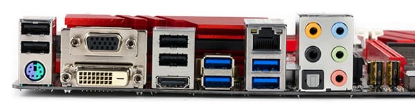 | Разъемы на задней панели | 1 × HDMI 1 × DVI-D 1 × VGA (D-Sub) 1 × S/PDIF (оптический, выход) 4 × USB 3.0 4 × USB 2.0 1 × RJ-45 5 × аудиоразъемов типа миниджек 1 × PS/2 |