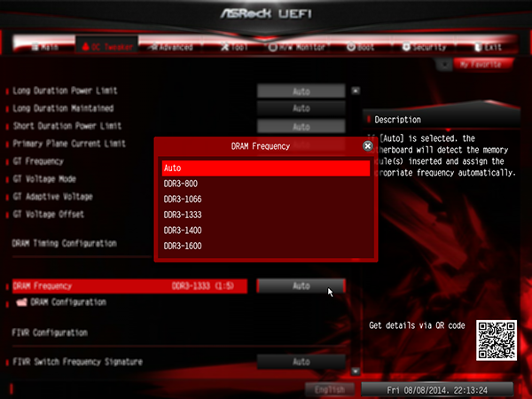 Естественно, самое интересное в данном случае, можно ли разгонять процессор и память или нет. Как выяснилось, память разгону не подлежит, и максимальная частота, которую можно выбрать в настройках UEFI BIOS — это 1600 МГц.